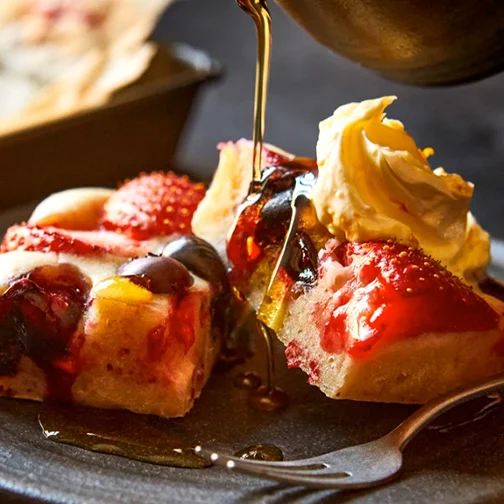 Skip the flipping with an easy berry pancake traybake, which is made all in one tray and can be prepared in advance.
