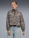 Woven Animal Print Half Zip Sweatshirt